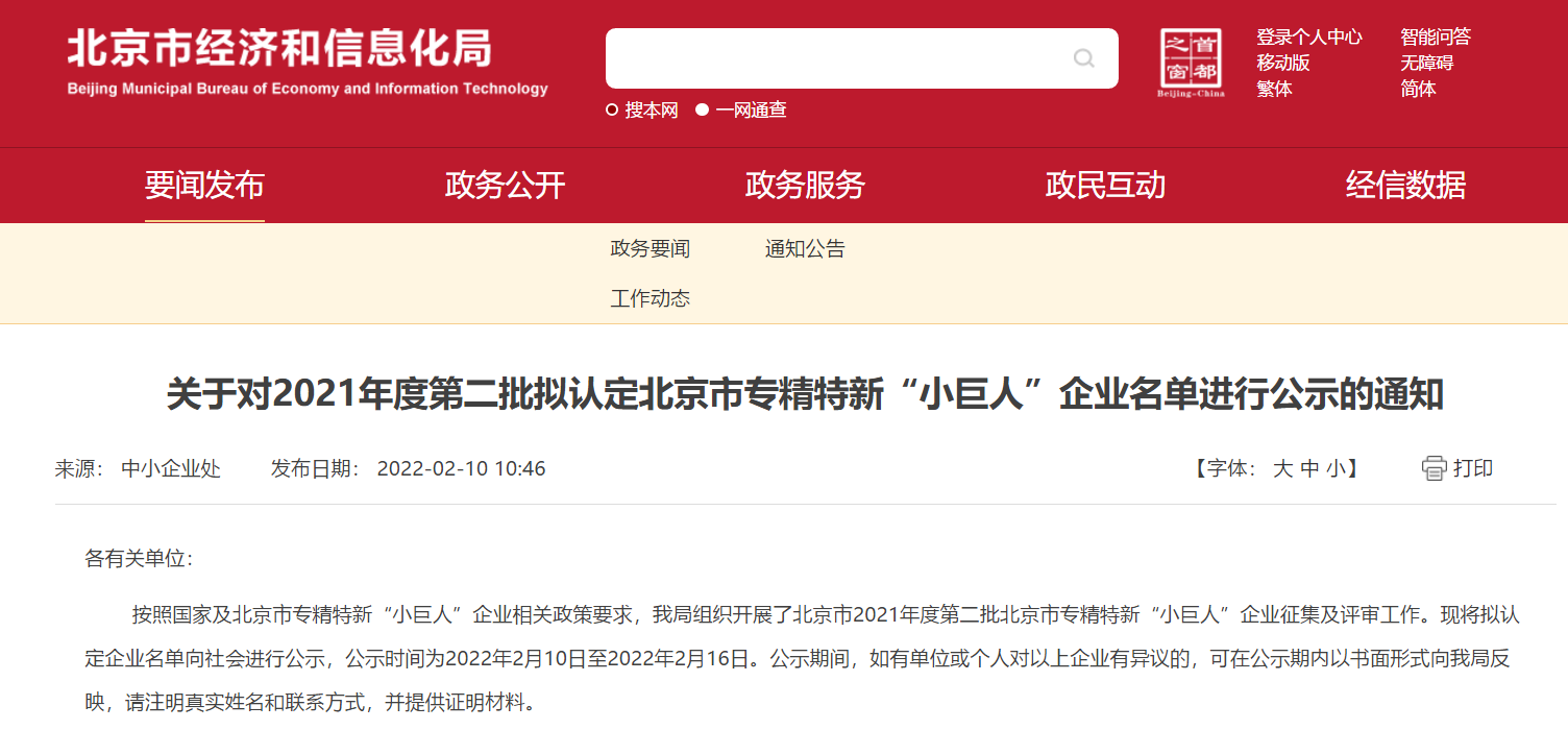 喜訊|北京世紀金光入選北京市專精特新“小巨人”擬定企業(yè)名單